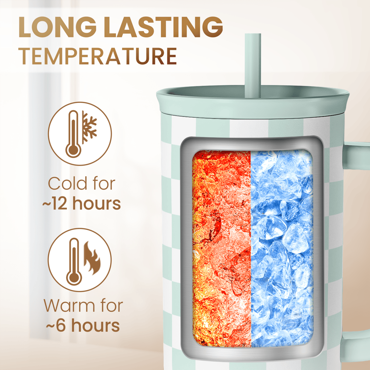Checkered Tumbler with Handle 40oz, Mint Checker Cup Stainless Steel Insulated Tumblers Coffee Travel Mug Cups with Straw, Gifts for Women Girls Teen Birthday Christmas