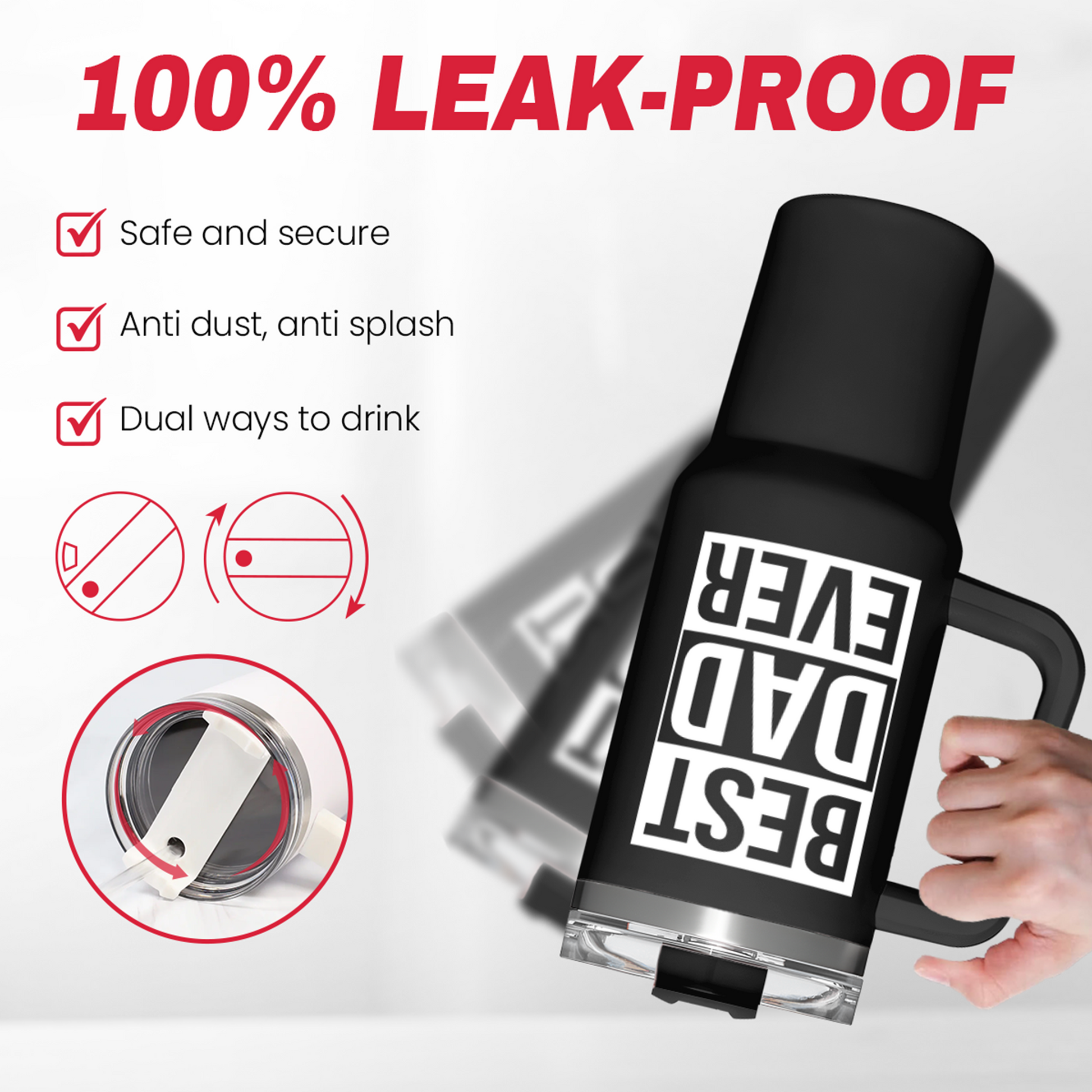 Dad Gifts for Dad from Daughter Son Best Dad Ever Tumbler with Handle 40oz Stainless Steel Insulated - Coffee Tumbler for Dad Father's Day Birthday Christmas Cup Gift Set with Lid & Straw