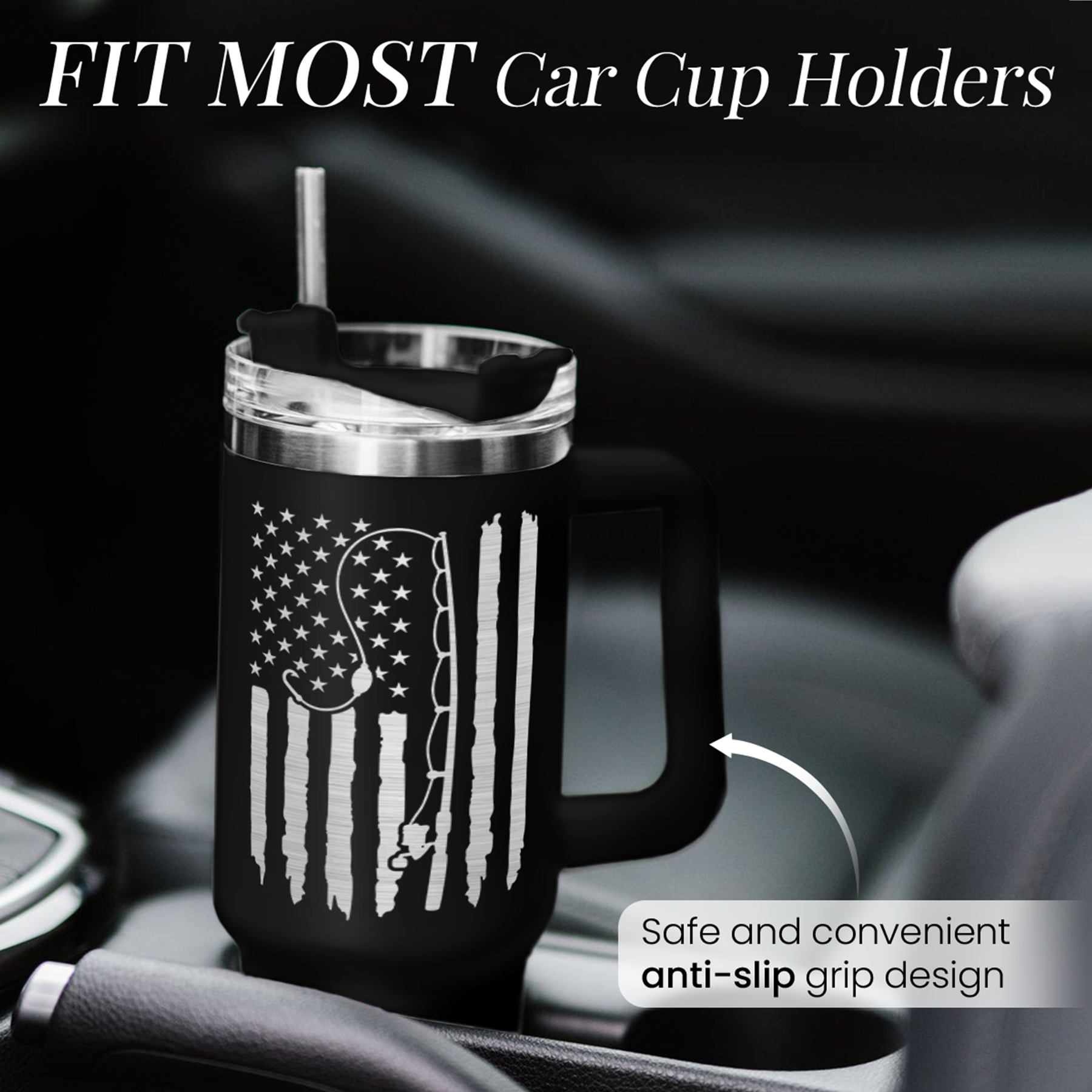 Fishing Tumbler with Handle 40oz, Fishing Gifts for Grandpa Dad Husband, Fish Cup Tumblers with Lid & Straw, Fisherman Gifts for Men, Fishing Gift for Christmas Birthdayc
