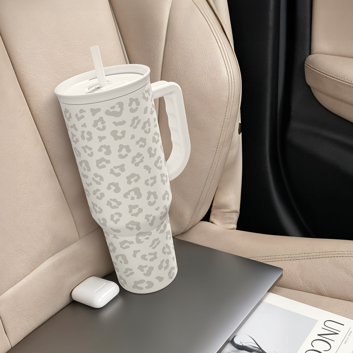 Leopard Tumbler with Handle, Insulated Cup Stainless Steel Travel Mug Cup, Gifts for Women Girl on Birthday Christmas, Cream Leopard, 40oz
