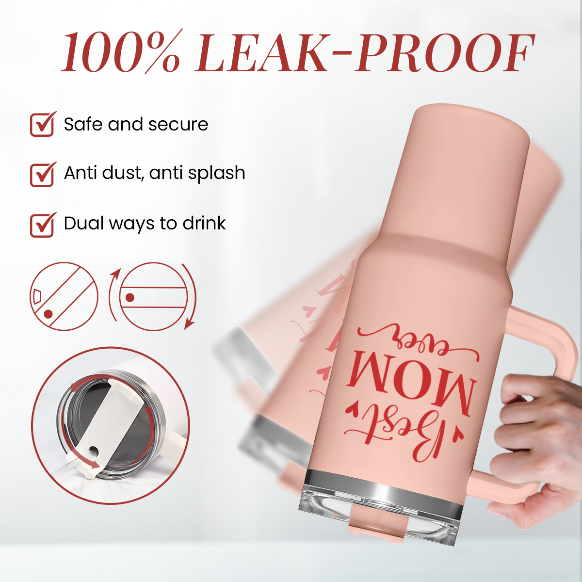 Mom Gifts Best Mom Ever Tumbler Stainless Steel 40oz with Handle Insulated Travel Cup - Mom Travel Coffee Mug, Mother's Day Christmas Birthday Gifts from Son Daughter